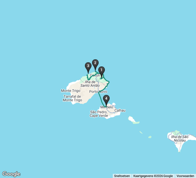 Je vliegt rechstreeks van Amsterdam naar het eiland Sao Vicente alwaar je transferchauffeur je opwacht om je naar de haven te brengen. Hier ontvang je het ticket voor de bootovertocht naar Santo Antão (ca 1 uur varen) en in Porto Novo, de hoofdstad van Santo Antão, wacht onze chauffeur je op. Na aankomst met ferry in haven van Porto Novo neemt een transfer je mee in noordelijke richting. Via de prachtige panoramaroute rijd je over het centrum van het eiland en langs de vulkaan naar je eerste overnachtingsadres.